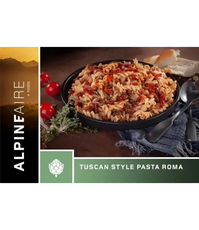 Fuel up for your hike with the carb-fueled energy of AlpineAire Foods Pasta Roma, a delectable, nutritious, cheesy pasta in a creamy tomato basil sauce loaded with 17 g of protein per serving.