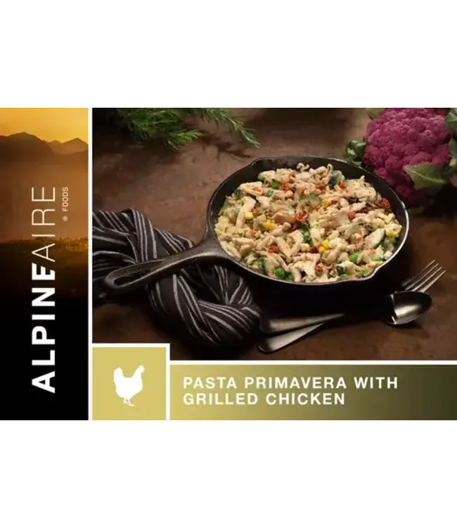 Fresh and zesty pasta with a light cream sauce, grilled chicken and colorful veggies, AlpineAire's Primavera with Grilled Chicken is a delicious fuel for your adventure.