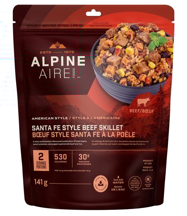 A zesty southwestern flavored combination of black beans, sweet potatoes, and peppers paired with beef and rice.