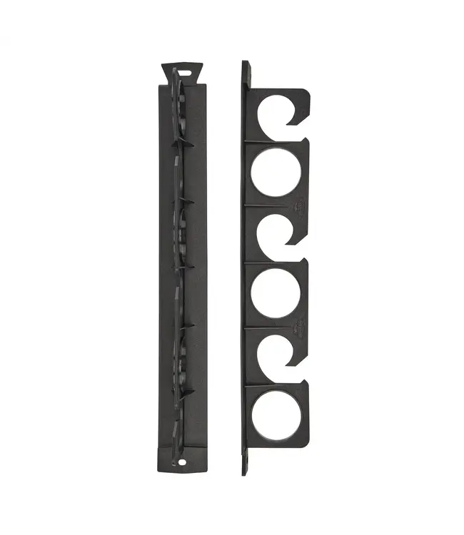 Use enclosed screws to attach to wood, metal, fiberglass or plastic. Use suitable wall anchor when applying to sheetrock or wallboard. Spacing between mounts vary depending on gear stored - recommended spacing between mounts is approximately 42".