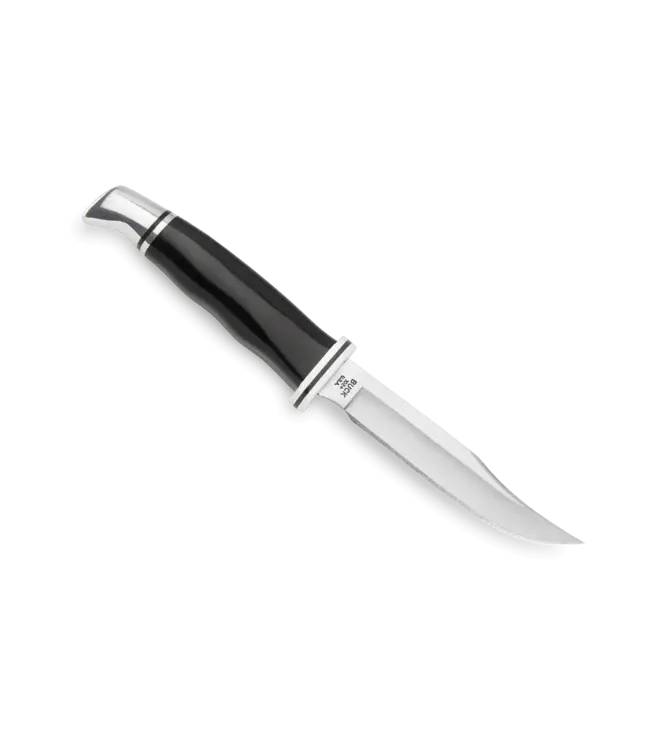 The classic 102 Woodsman is a true hunting knife, designed with a fine clip blade perfect for fish and small game. Features include full tang construction, a finger guard integrated into the blade, thumb grip ridges, and a deep choil. Overall length: 7 3/4" (19.7 cm). Includes a genuine, leather sheath. Imported sheath.