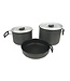 This unique line of lightweight and extremely durable cookware features hard anodized aluminum construction, making camp cooking a breeze.Features: - Perfect for campers, mountaineers, backpackers and paddlers - Lightweight, extremely durable cookware with great heat conduction - Non-stick, easy-clean coating on the interior of the pots and frying pan - All components nest together into a compact package X-Large Cook Set Includes: - 2.7 qt. pot with folding handles and lid - 4 qt. pot with folding handles and lid - 8.5" frying pan with folding handles- Nylon stuff sack
