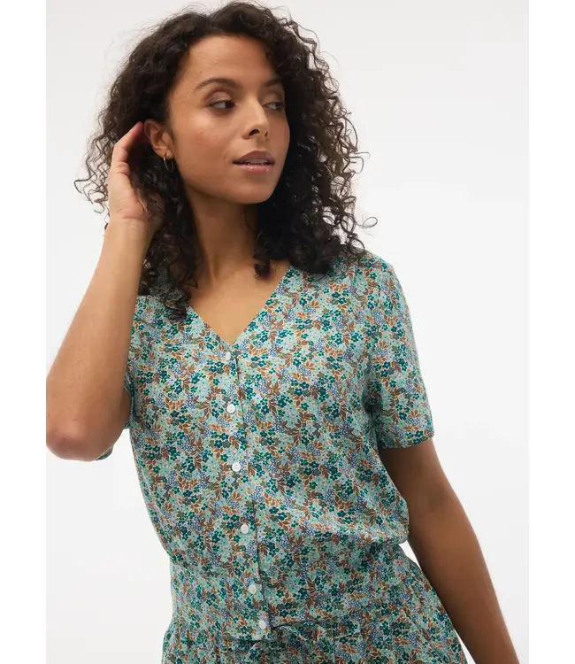 This short-sleeve button-up top with a V-neckline brings a relaxed, countryside-inspired feel, enhanced by the Floral Daydream print. Crafted from soft ECOVERO, it’s as comfortable as it is easy to wear.