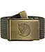 Robust canvas belt. Adjustable length and military buckle with brushed brass finish. Width 4 cm.