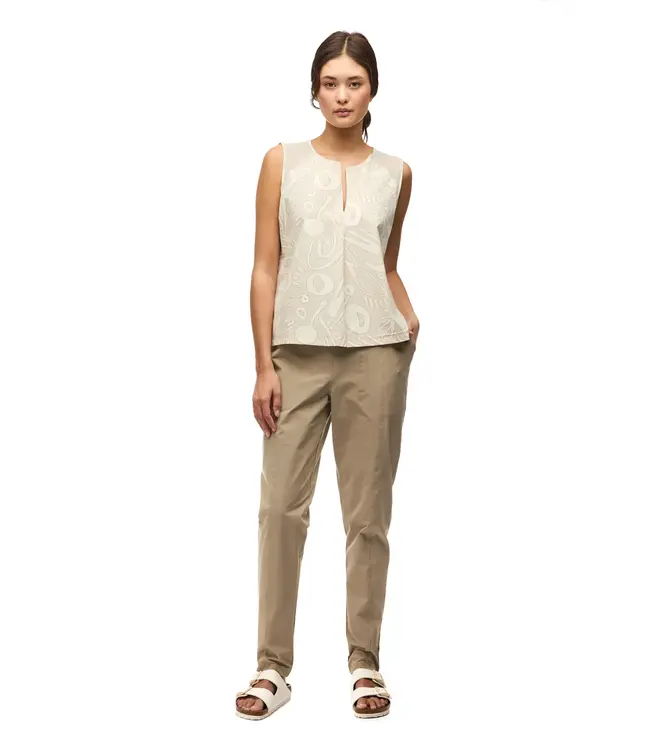 A sleeveless top with mesh inserts at the shoulder, front pleat and a v-notch collar. Perfect for daytime trails and polished enough to take you into the evening. This top is all about function meeting femininity, a stand-out piece for the season.