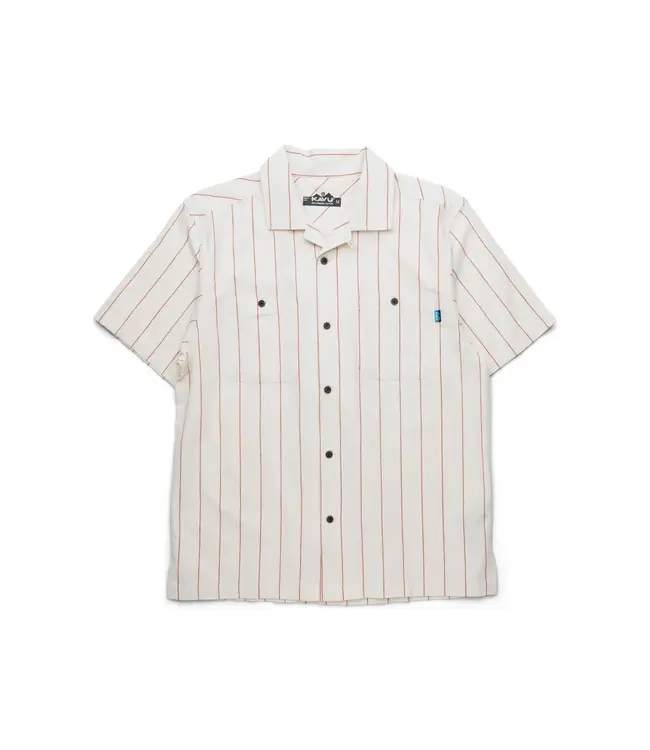 Casual fit, short sleeve button up shirt, fold over camp collar with button and loop closure, two chest pockets with button closure, 25% certified recycled polyester faux wood buttons, back bias cut yoke panel with center back box pleat, straight hem with side vents.