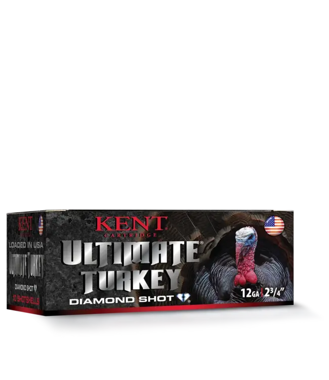 Kent Ultimate Turkey 12GA 2-3/4" 1-5/8 oz shotshells deliver high-velocity performance with Diamond Shot for superior pattern consistency and maximum knockdown power. Ideal for turkey hunting.