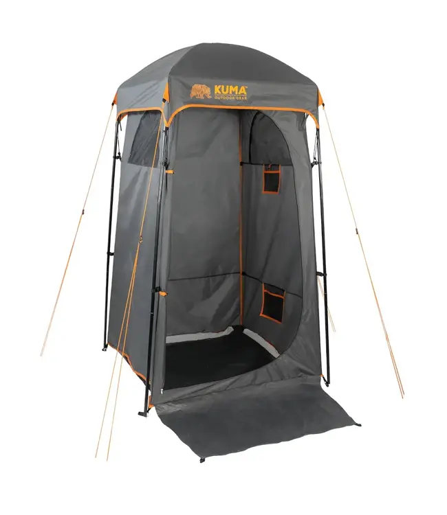 Toilet, Shower, Change Room all in one! This over sized unit has mounting locations for a portable shower with hose pass-through and nozzle attachment. It also includes 2 side windows, 2 ceiling vents, drain grommet hole w/ mesh and PE flooring, entrance mat, 3 mesh pockets inside.