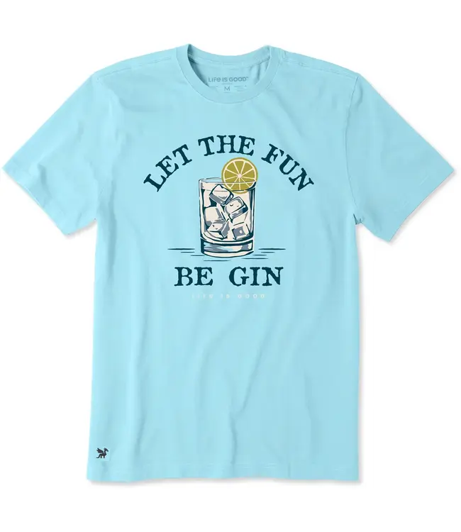 Live life to the fullest with the Life Is Good Men's Let the Fun Be Gin Drink Short Sleeve Crusher Tee. This classic fit tee is washed for everyday softness and barely skims the body for a look that's as easygoing as you are. Adds a fun, lighthearted touch that's perfect for casual days and weekend adventures. Whether you're sipping gin or simply enjoying the moment, this classic crusher tee is your ticket to carefree living.
