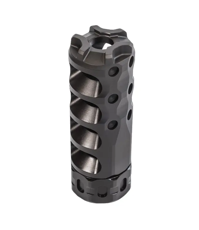 Developed from the ground up and backed by knowledge gained from years of pushing the edge of muzzle device performance, the Hypertap muzzle brake delivers more than we’ve ever offered before. Precision Armament's proprietary Hybrid Baffle Design combined with advanced Convergent-Divergent port geometry yields an unprecedented recoil reduction of over 84%*, nearly 10% higher than Precision Armament's M4-72, while maintaining modest 35-degree baffle angles and generous bore clearance. This results in exceptional safety, less gas blowback, better accuracy, and higher overall shooter comfort than any other device in its class. Fully tunable gas biasing allows the shooter to further reduce, or even eliminate, sight picture movement while firing. An integral universal timing nut eliminates the need for shims and allows quick field installation & removal using an adjustable wrench or the lightweight spanner tools (included). Additional features include: zero flash increase, compact lightweight design, a rugged skeletonized crown, cleaning friendly design, heat-treated stainless steel construction, a tough Ionbond CrCN finish for superior durability and, as always, 100% Made in the USA.