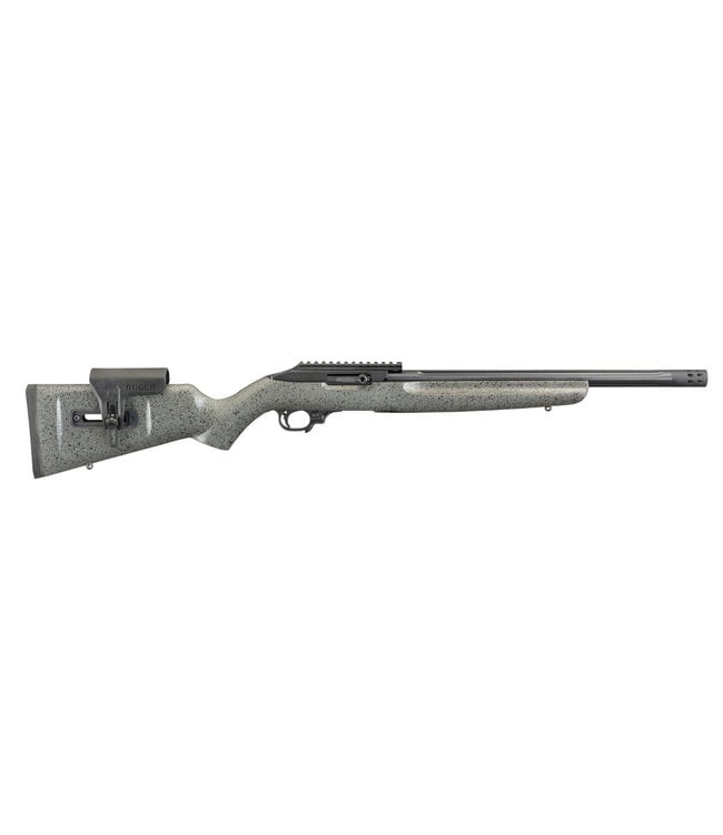 The Ruger 31120 is a specialized Ruger 10/22 Competition Carbine chambered in .22 LR, designed for high-accuracy shooting. As a Custom Shop product, it features a 16.12-inch cold hammer-forged, fluted bull barrel, a black/grey laminated stock with an adjustable comb, and an enhanced receiver with a 30 MOA Picatinny rail.