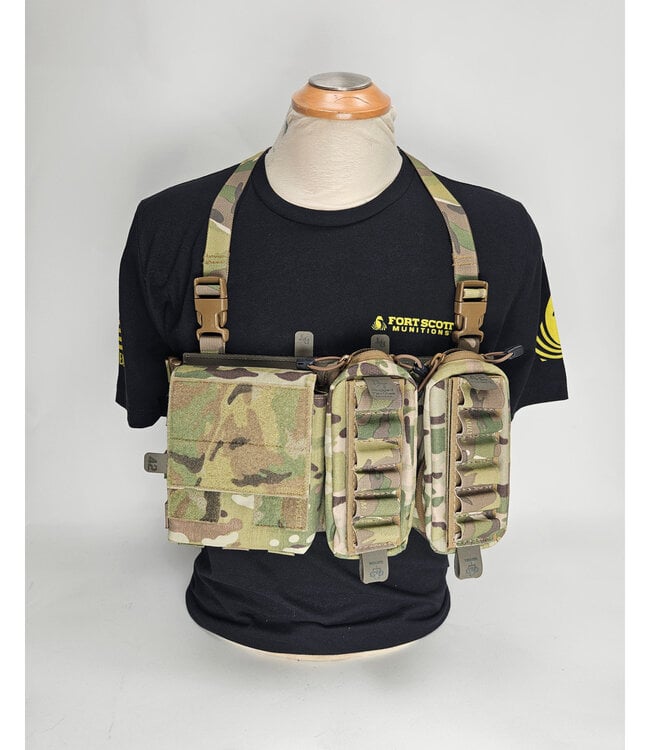 S&J worked with the design team at Rugged Textiles to develop a modern day shotgun micro chest rig, based on Rugged Textiles 42 series Micro chest rig and line of pouches. Combined with S&J Hardware DSC pouch system and Gen 3 Tegris lined Detachable Shotshell Strips.