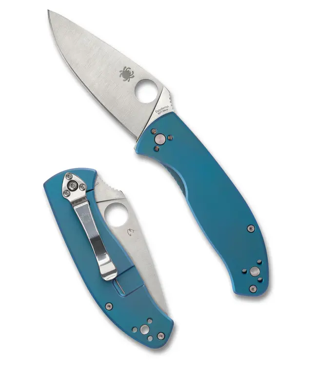 Long the flagship of Spyderco’s Value Folder family, the incredibly popular Tenacious® was created to provide all the signature qualities of a Spyderco CLIPIT® design in a budget-friendly format. More recently, this best-selling design has also evolved to include upscale versions showcasing high-performance materials and enhanced features. The Tenacious R.I.L. elevates the design to all-new heights by expressing it with titanium handle scales and an ultra-reliable Reeve Integral Lock™ (R.I.L.) mechanism. Meticulously crafted from solid 6AL4V titanium, the scales have precision-machined recesses on their interior surfaces to minimize weight and are color anodized a brilliant blue. The reverse-side scale is machined to create an integral lock bar that forms the basis of the knife’s R.I.L., or “frame lock.” It includes an inlaid stainless steel interface that ensures a positive lock-up and a long service life, as well as functioning as an overtravel stop during lock release. The business end of this remarkable knife features a full-flat ground, PlainEdge™ blade crafted from 8Cr13MoV stainless steel. Its fully accessible Trademark Round Hole™ provides swift, ambidextrous, one-hand opening and unmistakably identifies the knife’s Spyderco pedigree. To ensure convenient carry and immediate access, the handle includes a broad-based pocket clip that can be mounted in four different positions to provide a choice of left or right-side, tip-up or tip-down carry. A satin-finished blade and brightly finished handle hardware,