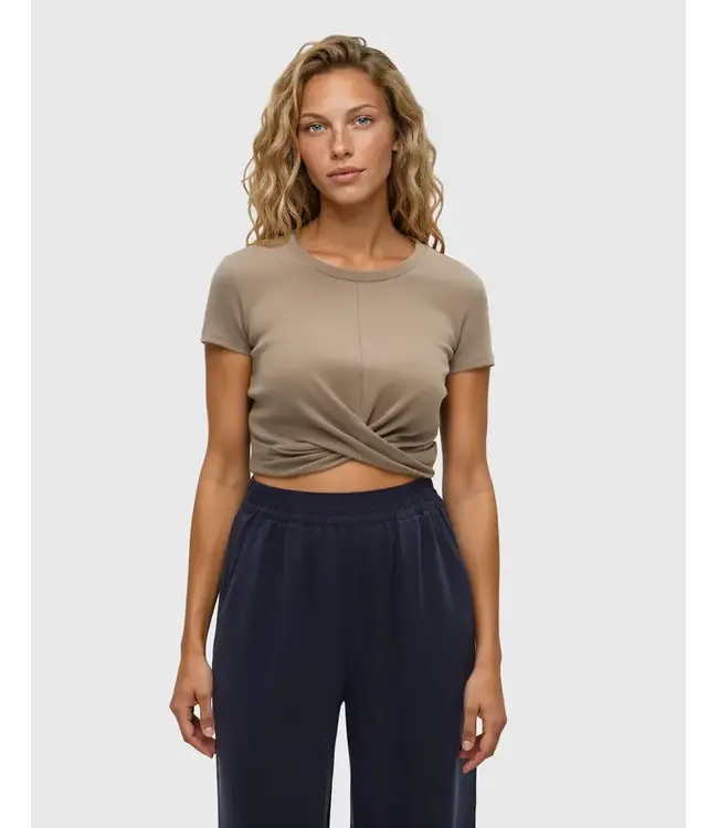 An everyday t-shirt with a twist — literally. This stretchy twist-front tee is crafted from silky soft EcoTech Rib Jersey that keeps you cool on the move and our planet cool for the future.