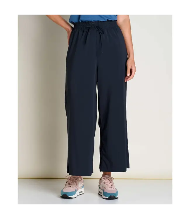A wider leg for even more flow, more drape and more fun. A ruffle at the waist gives her some feminine flair, and a tie, hand pockets and secure zip make her a vacation must-have.