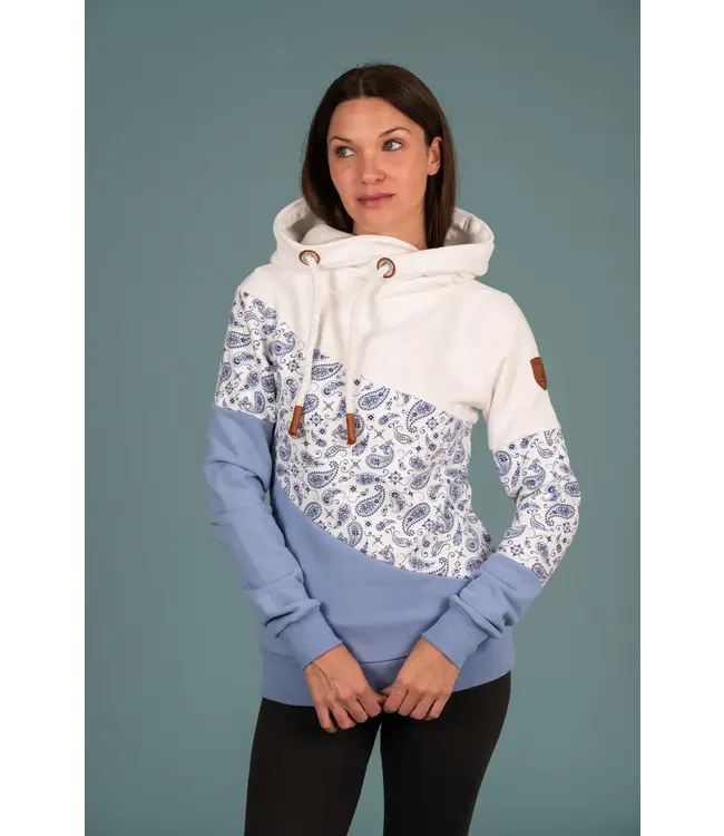 Striking print design featuring a detailed blue paisley pattern on a crisp white background for a touch of elegance Read more.
